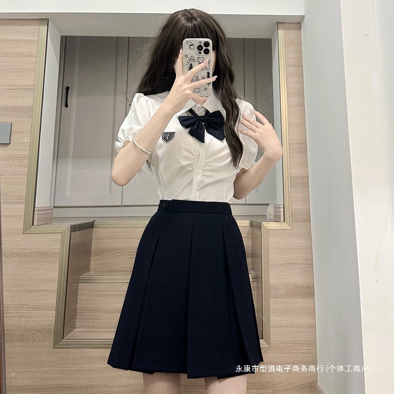 Setelan Suster Sekolah JK Warna Biru Sakurajima Model Terpopuler Rok Lipit Mengurangi Usia Kemeja Musim Panas Lengan Pendek Setelan Tiga Potong Premium