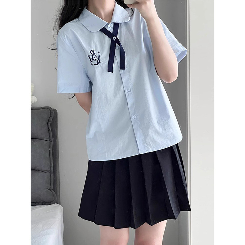 Seragam Sekolah Gaya Thailand Kemeja Kasual Biru Gaya Kampus Kemeja Seragam JK Musim Panas Manis Lengan Pendek Mengurangi Usia Elegan