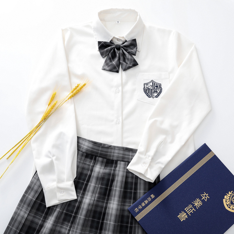 Setelan Seragam JK Asli untuk Siswa Perempuan Kemeja Gaya Murni Kemeja JK Membentuk Pinggang Terlihat Kurus Rok Lipit Dua Set