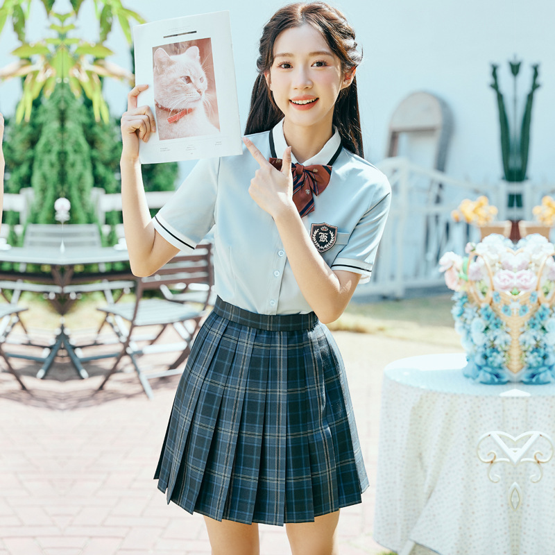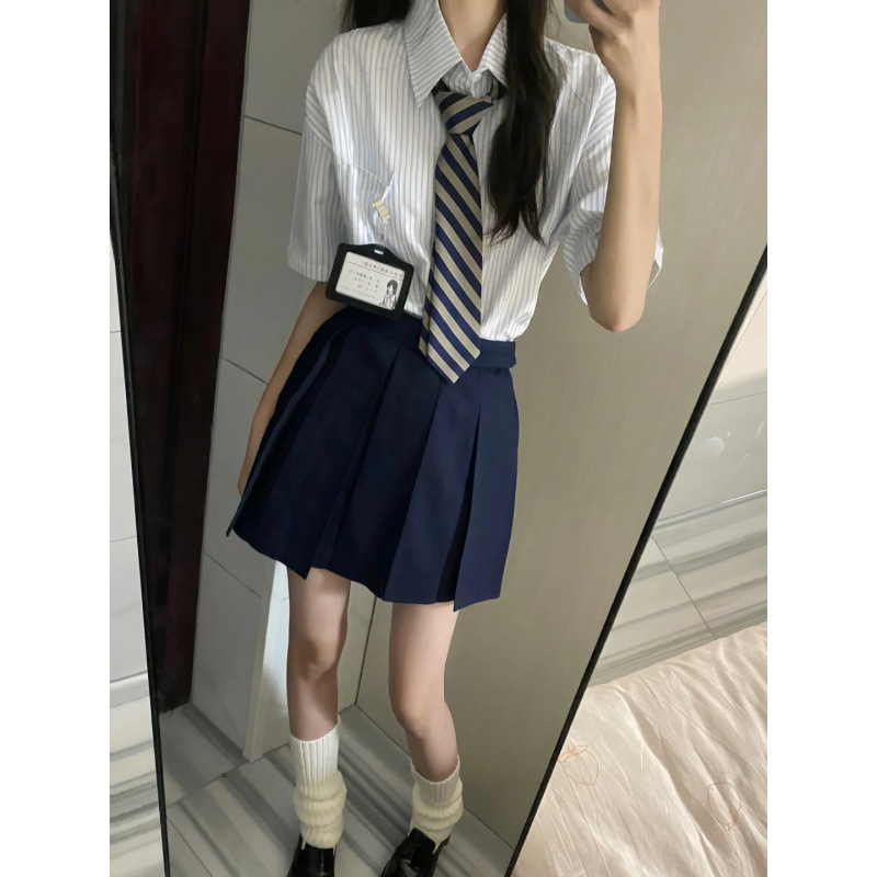 Setelan Kemeja Pelangsing Pinggang Lengan Pendek Lurus Slim Fit Bertali JK Gaya Jepang Asli Rok Setengah Badan Siswi Musim Panas