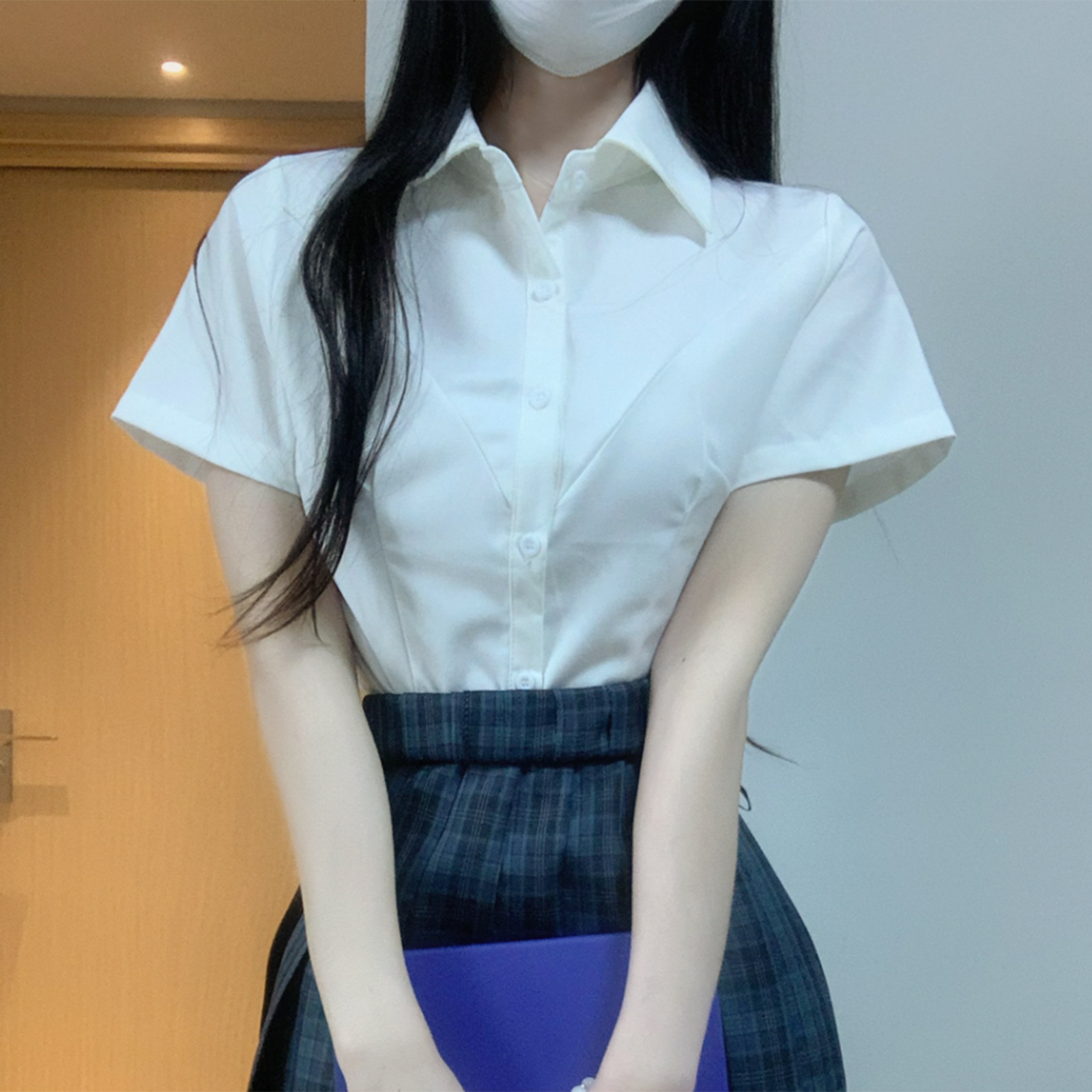 JK Seragam Kemeja Putih Mudah Dipadu Padan Terlihat Kurus Ramping Elegan Kelas Tinggi Pakaian Profesional Guru Musim Panas Wanita Lengan Pendek