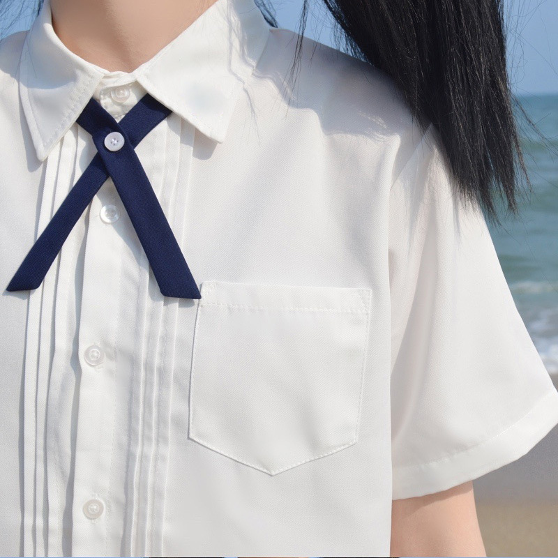 Setelan JK dasar kemeja lipit setengah organ, baju pelajar kerah kotak lengan pendek hitam putih, kemeja lipit setengah organ depan kerah lancip