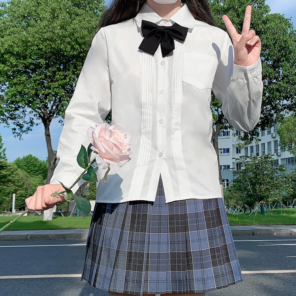 Baju berlipat organ depan kerah lancip JK, baju kasual kerja siswa, seragam sekolah kelas persegi lengan panjang, kemeja lipit organ depan, seragam JK