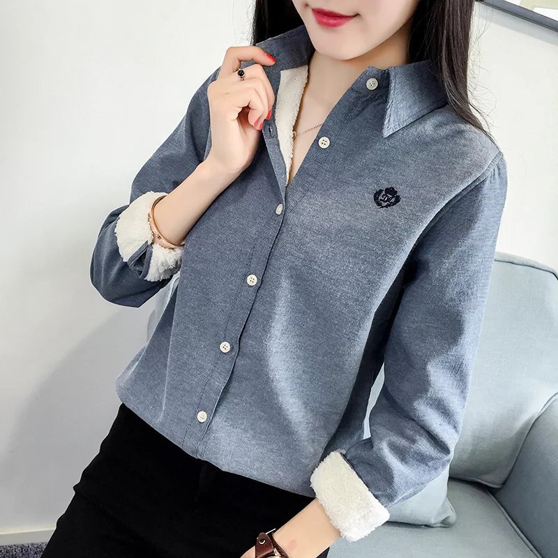 Baju Wanita lengan panjang, pakaian wanita musim gugur dan musim dingin 2023, kemeja Dalaman lengan panjang pelajar baru, kemeja fleece-lined hangat tebal