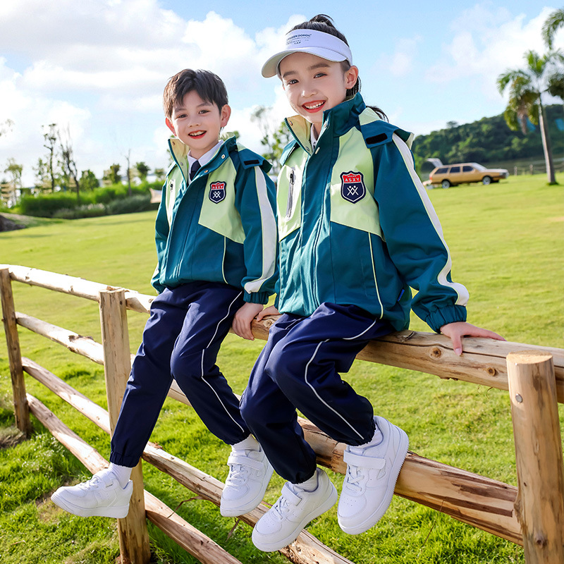 Seragam kelas hijau, jaket seragam sekolah dasar, setelan tiga potong, pakaian olahraga anak-anak Musim Semi dan Musim Gugur, pakaian taman taman taman kanak-kanak, pakaian musim dingin