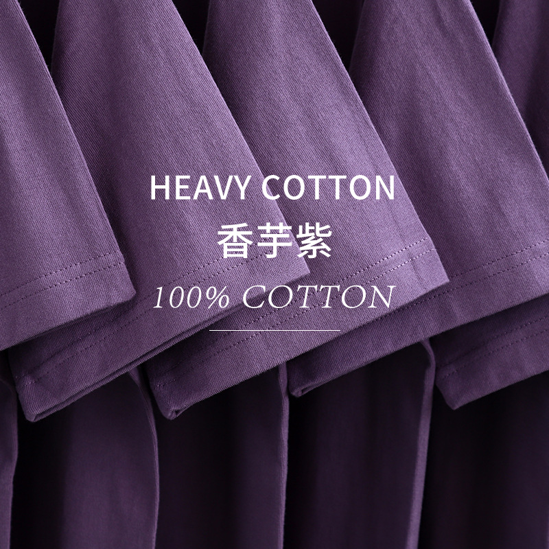 Kaus Lengan Pendek Katun Murni Berat 300g Xinjiang Atasan Kasual Murid Sekolah Longgar Warna Polos Leher Bulat Musim Panas Wanita
