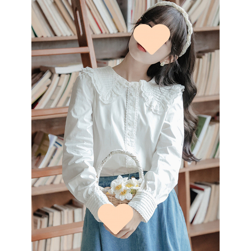 Pakaian Musim Semi Musim Gugur Kemeja Gaya Barat Manis Gaya Prancis Atasan Renda Siswa Pinggang Bunga Gaya Sekolah Gaya Desain Pendek Gaya Elegan
