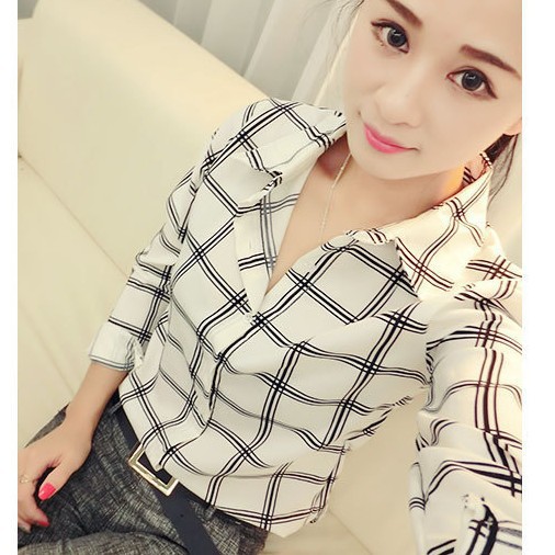 Kemeja kotak-kotak wanita, baju murid lengan panjang bercetak kotak-kotak Musim Semi 2024 untuk semua cocok