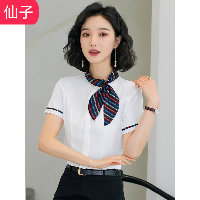 Baju Formal wanita lengan pendek, baju wanita lengan pendek profesional, pakaian gaya Korea, hotel Bank siswa, meja depan, kemeja musim panas penjualan real estate