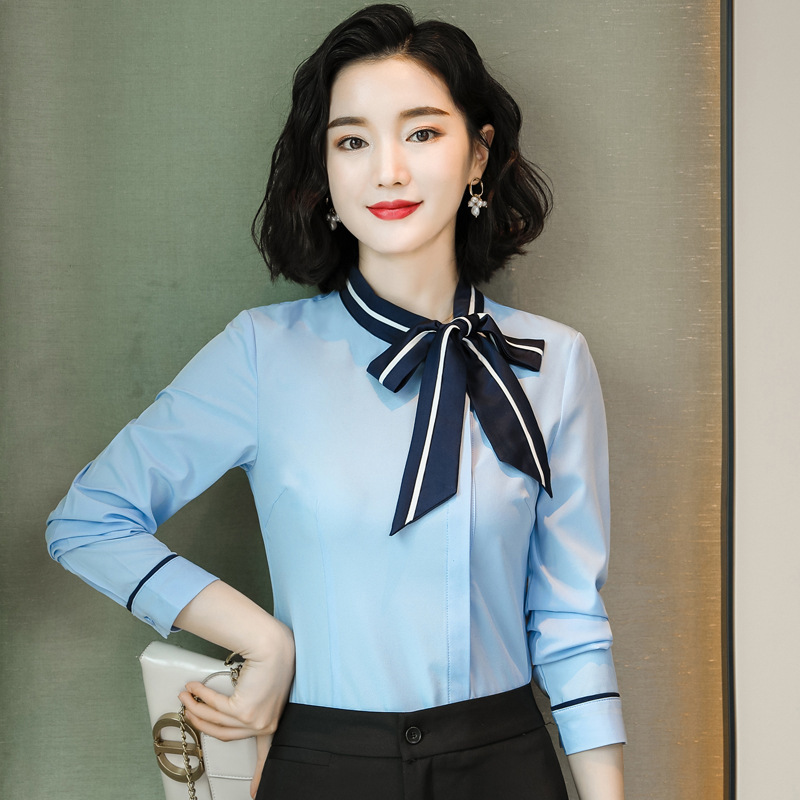 Pabrik langsung Musim Semi dan musim gugur baru gaya Korea pakaian bisnis kemeja putih wanita lengan panjang busur Semua cocok artistik manis siswa