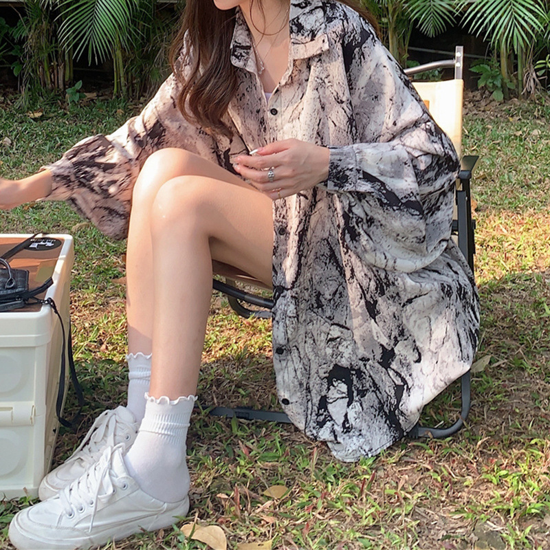 Kemeja Lengan Panjang Menutupi Tinta Retro Segar Musim Panas 2025 Pakaian Luar Wanita Model Tipis Kasual Terlihat Ramping Menutupi Daging Siswa