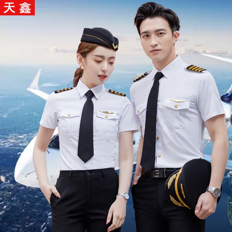 Seragam kapten penerbangan pria, baju pilot kosong Musim Semi dan Musim Gugur, kemeja epolet lengan pendek, pakaian pramugari siswa