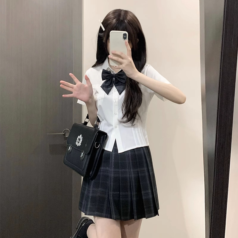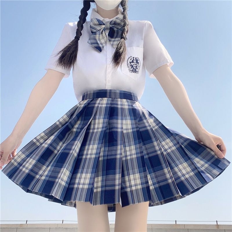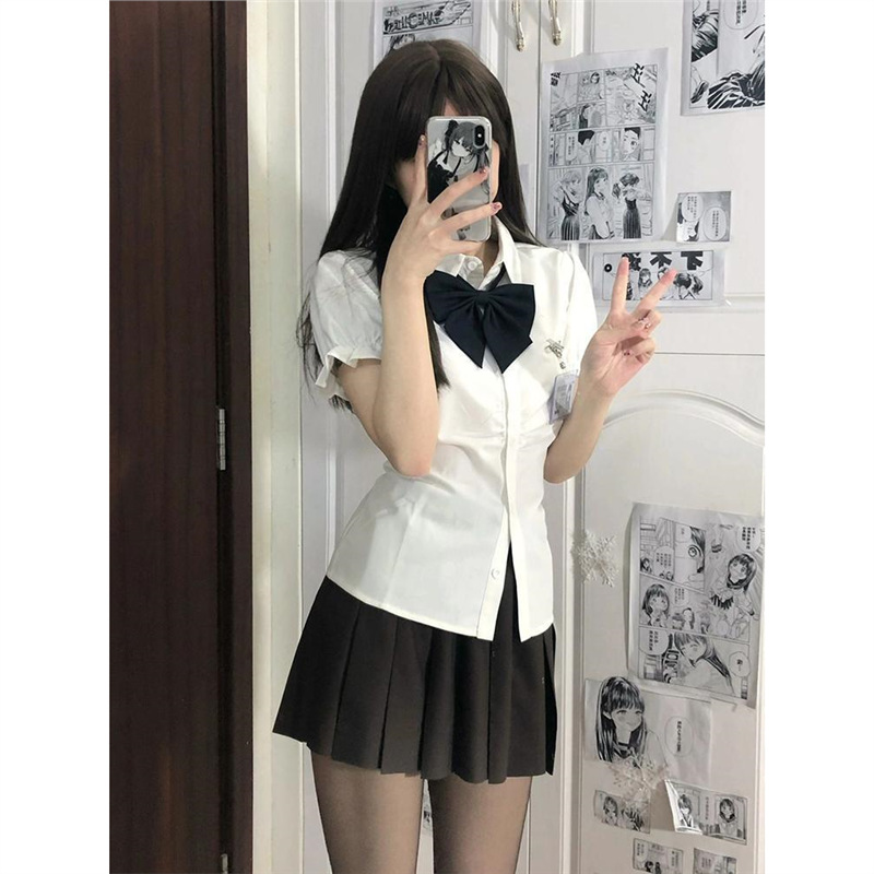 Jk setelan seragam rok lipit musim panas asli kemeja lengan pendek gaya Universitas set lengkap pakaian kelas Musim wisuda wanita