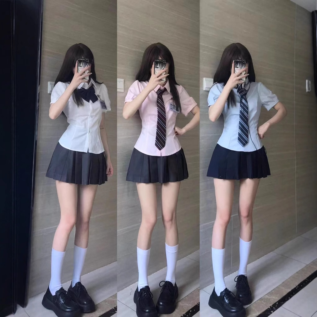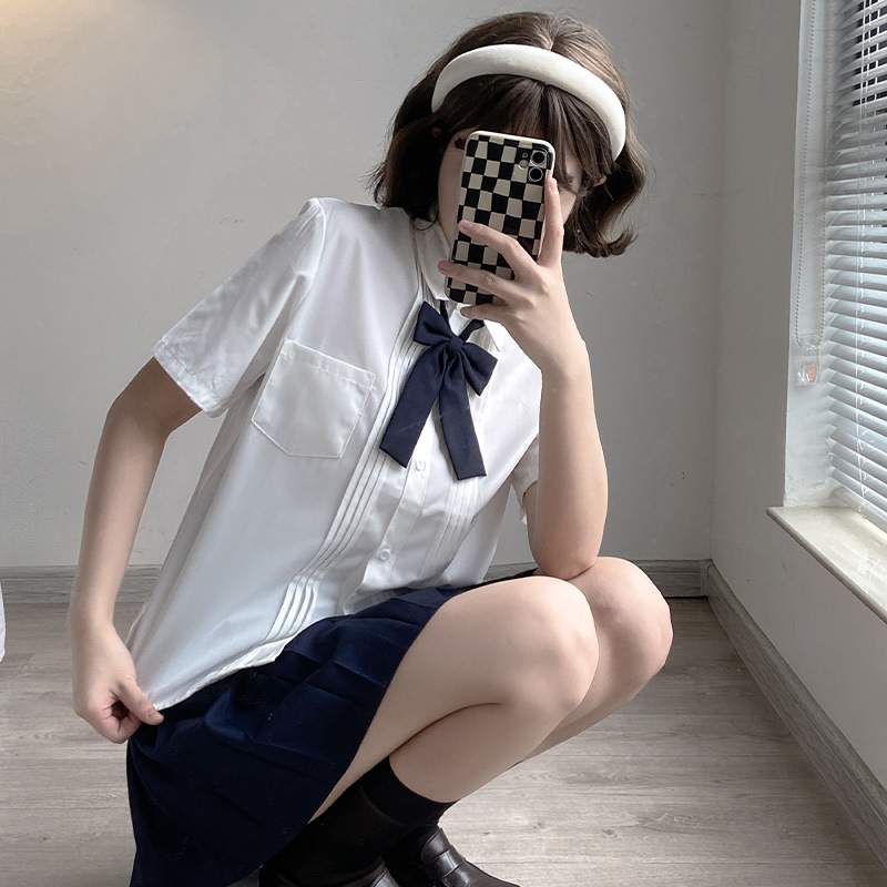 Kemeja Lengan Pendek Lipit Organ Seragam JK Gaya Jepang Asli Gaya Jepang Seragam Sekolah Seragam Sekolah Mudah Dipadu Padan
