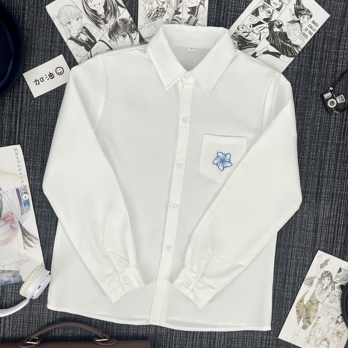 Kemeja bordir bunga asli untuk wanita, gaya sekolah Jepang, kemeja dalam seragam JK putih serbaguna.