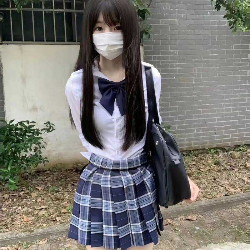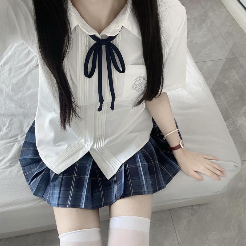 Jk setelan seragam rok lipit musim panas asli kemeja lengan pendek gaya Universitas set lengkap pakaian kelas Musim wisuda wanita