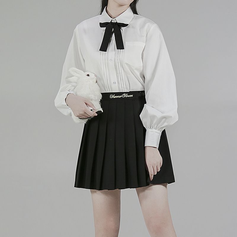 Kemeja Seragam JK Gaya Jepang Membentuk Pinggang Terlihat Ramping Lengan Busa Mudah Dipadu Padan Rok Lipit Gaya Kampus Setelan Kemeja Manis dan Pedas
