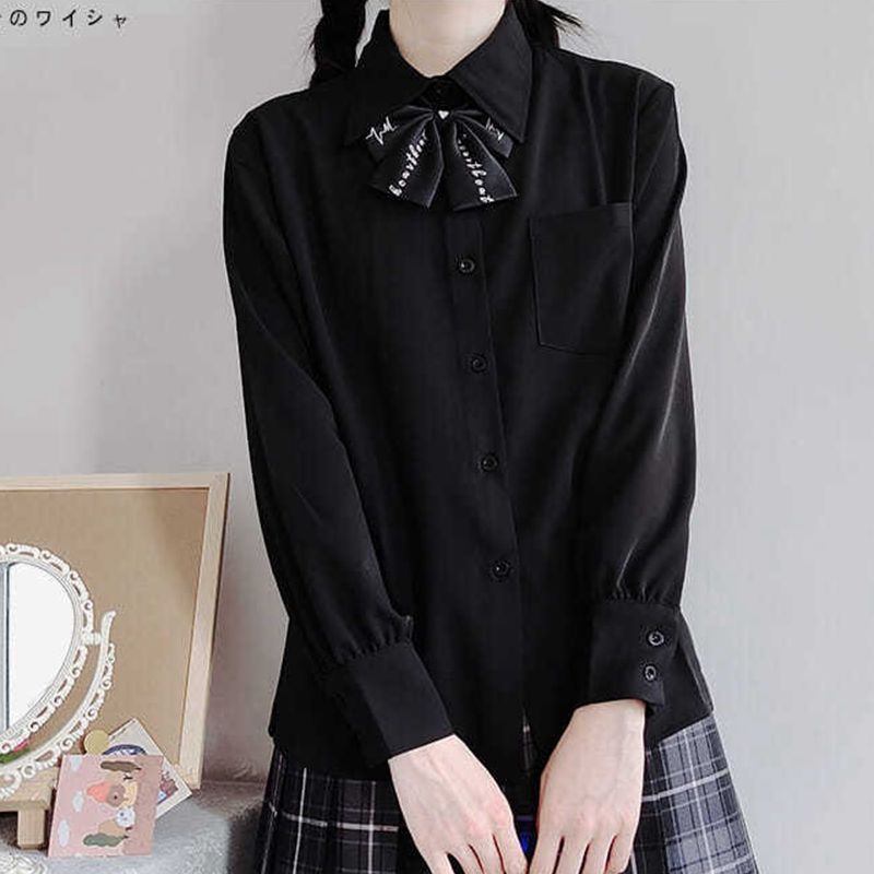 Kemeja Hitam Seragam JK Kemeja Wanita Longgar Gaya Kampus Model Dasar Lengan Panjang Wanita Pakaian Kelas Murid