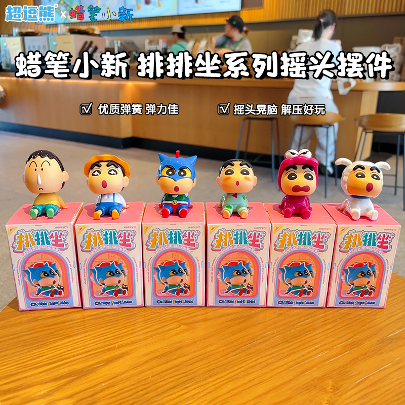 正版蜡笔小新周边潮玩礼品桌面车载摆件办公室家居卡通公仔盲盒