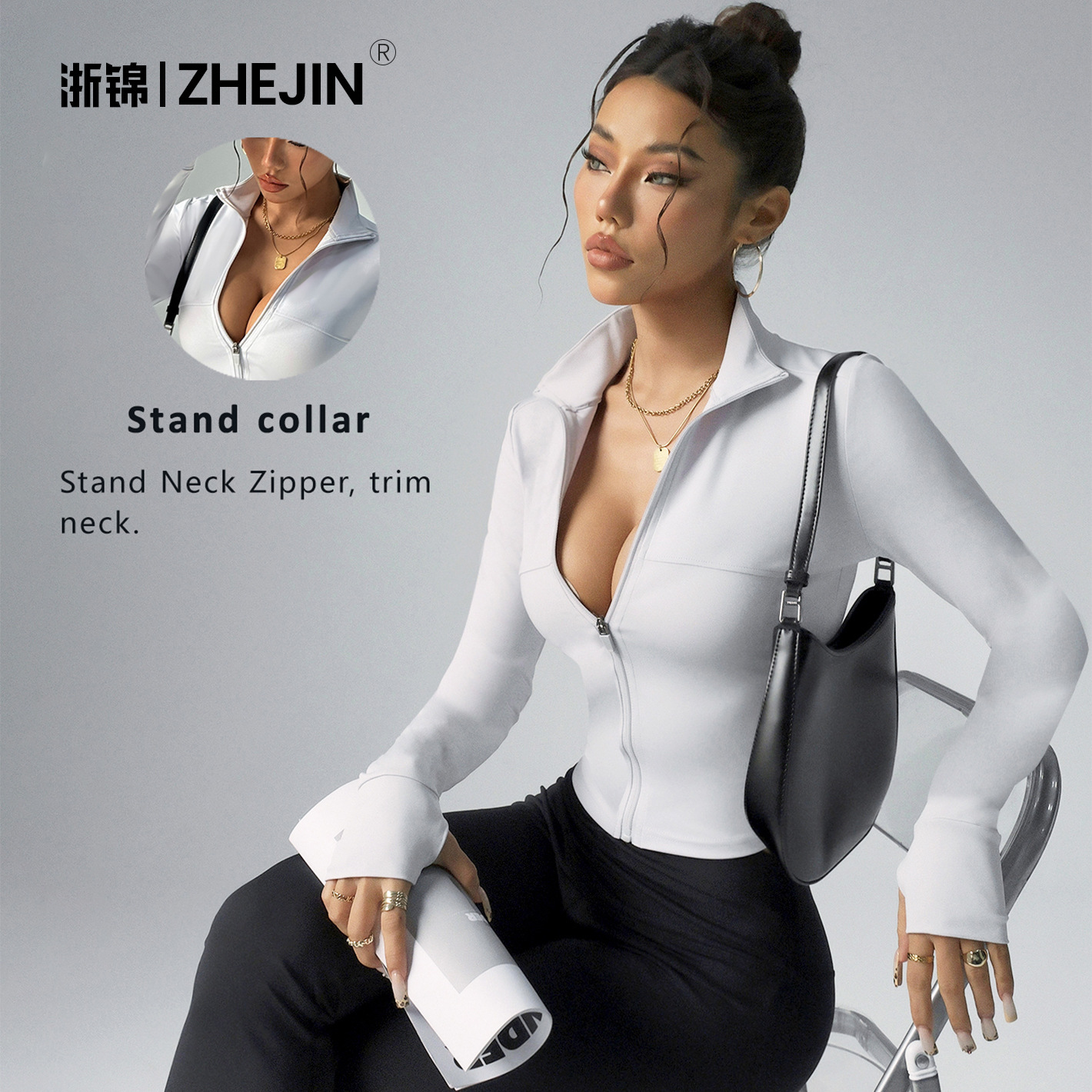 Atasan olahraga lari ketat dengan ritsleting baru, jaket fitness bernapas dengan rasa nyaman seperti tanpa alas, pakaian yoga lengan panjang cepat kering untuk wanita.