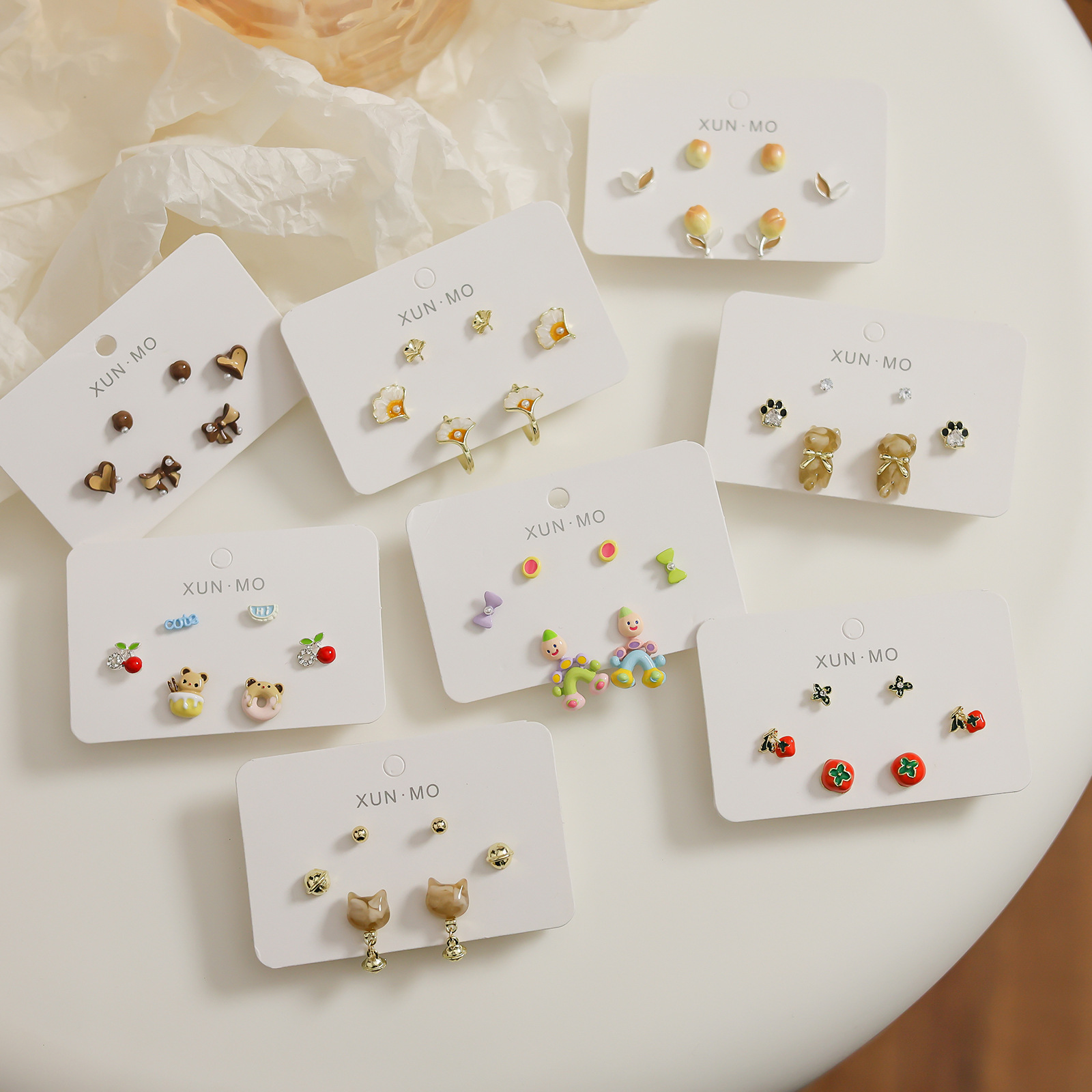 秋冬美拉德可爱童趣银针耳钉套装学生百搭猫咪耳环卡通耳饰女批发