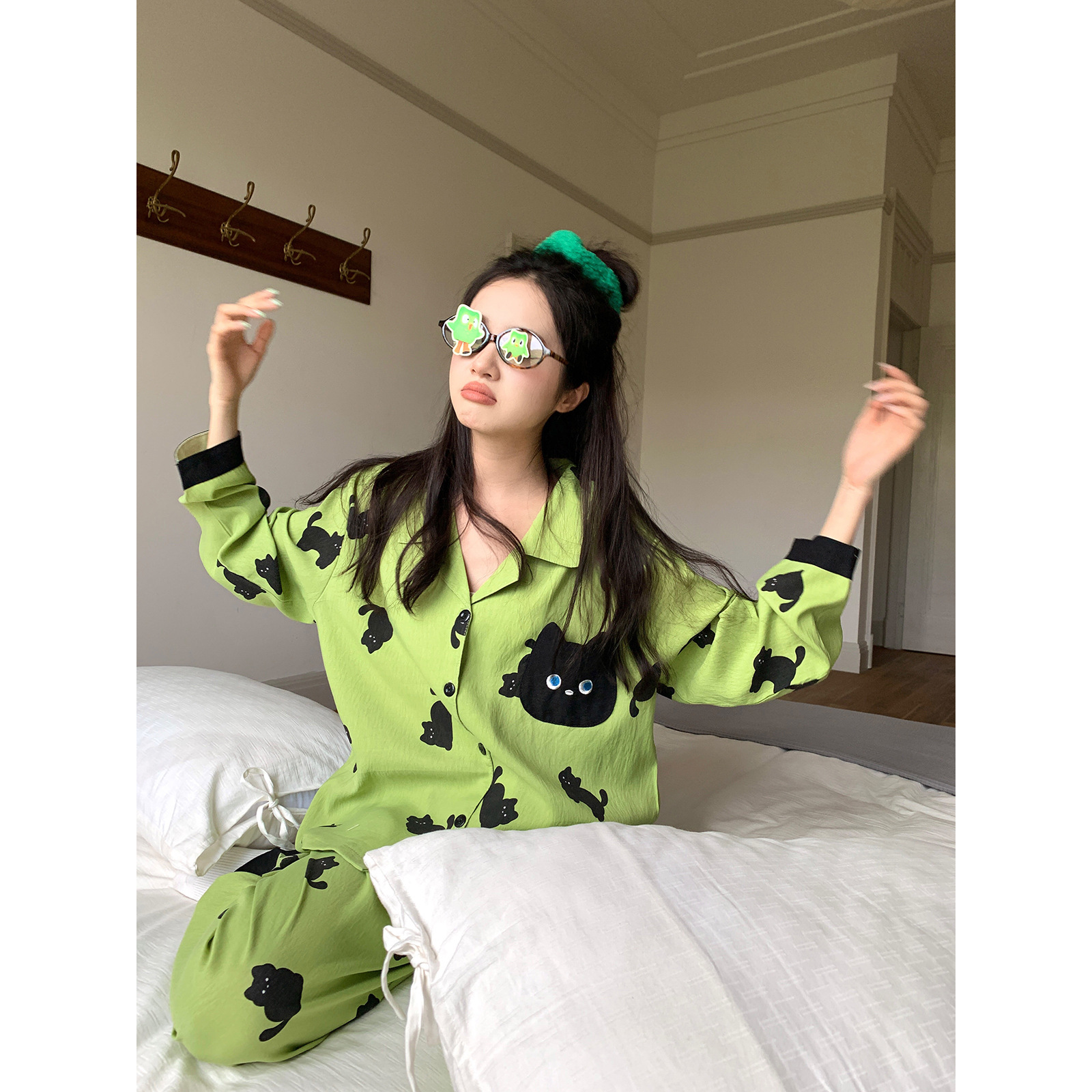 Piyama wanita lengan panjang, pakaian rumah sutra tipis ukuran besar seksi gaya Korea murid musim panas dan semi musim gugur