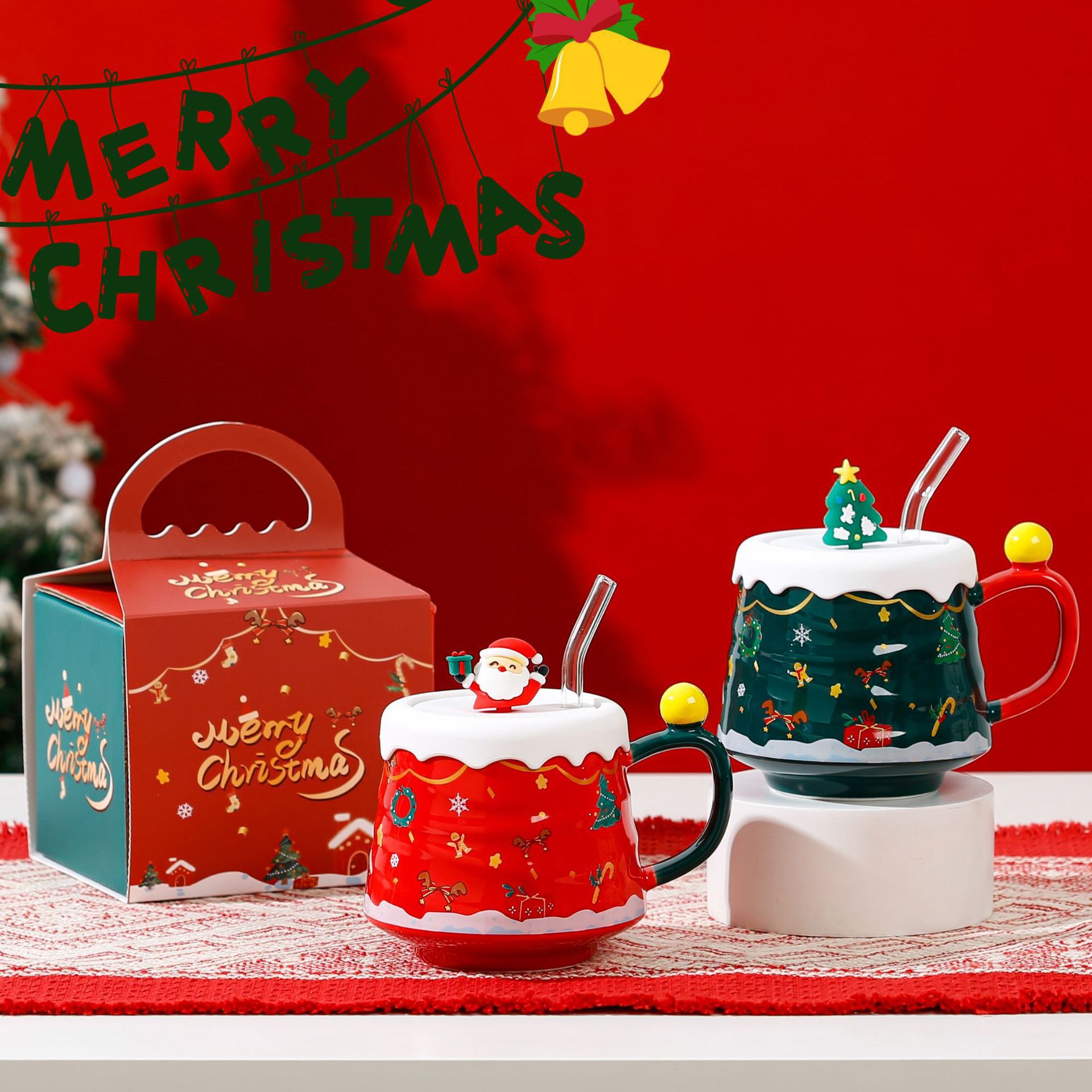 卡通创意圣诞马克杯家用水杯带盖高颜值陶瓷杯伴手礼套装圣诞礼物