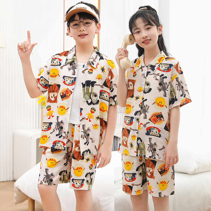 青少年学生宽松短袖短裤睡衣男女童家居服莱赛尔棉儿童卡通空调服