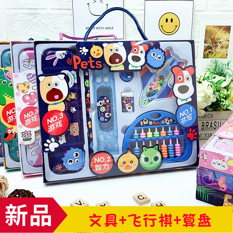 Peralatan tulis siswa sekolah dasar, tas hadiah kombinasi Abacus catur, hadiah anak, perlengkapan sekolah, kotak hadiah alat tulis