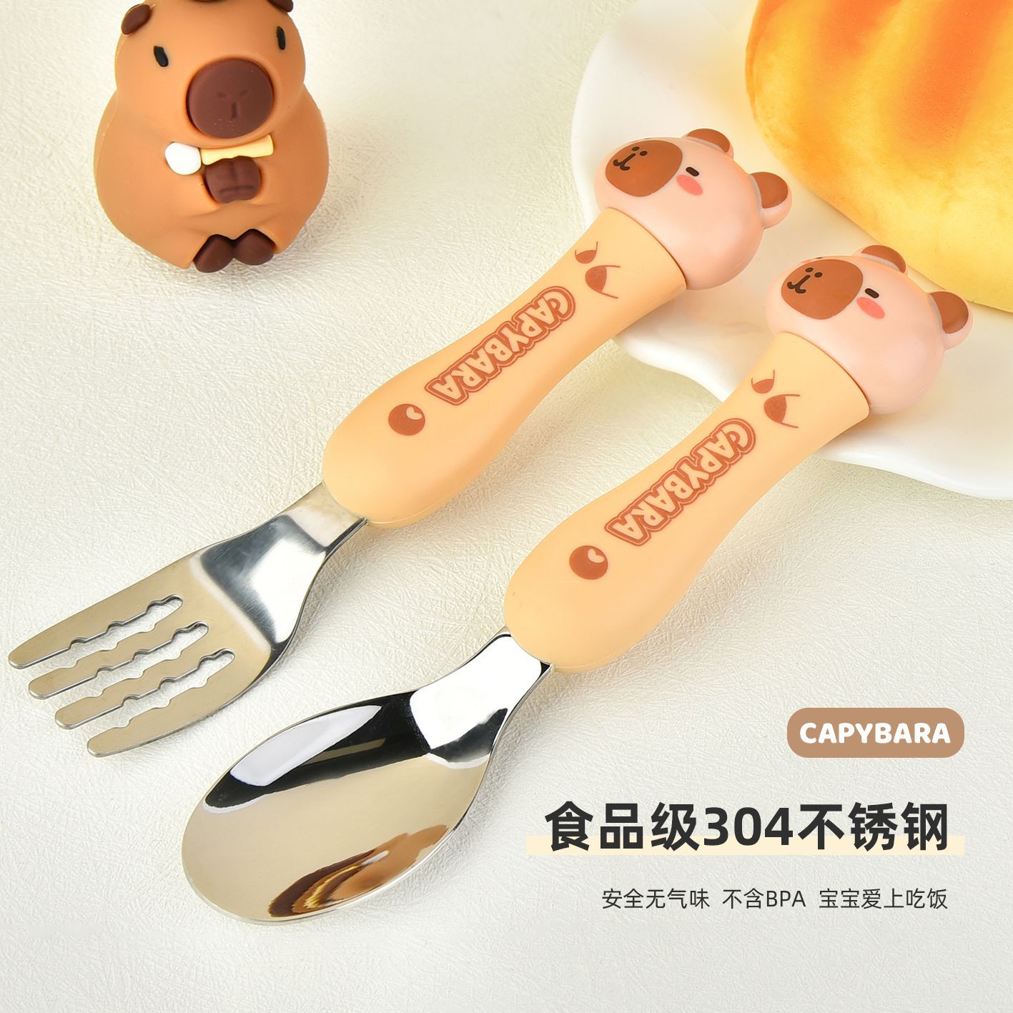 Peralatan Makan Grosir Stainless Steel Siswa Kartun Anak-anak Garpu Sendok Set Luar Ruangan Portabel Hadiah Rumah Pabrik