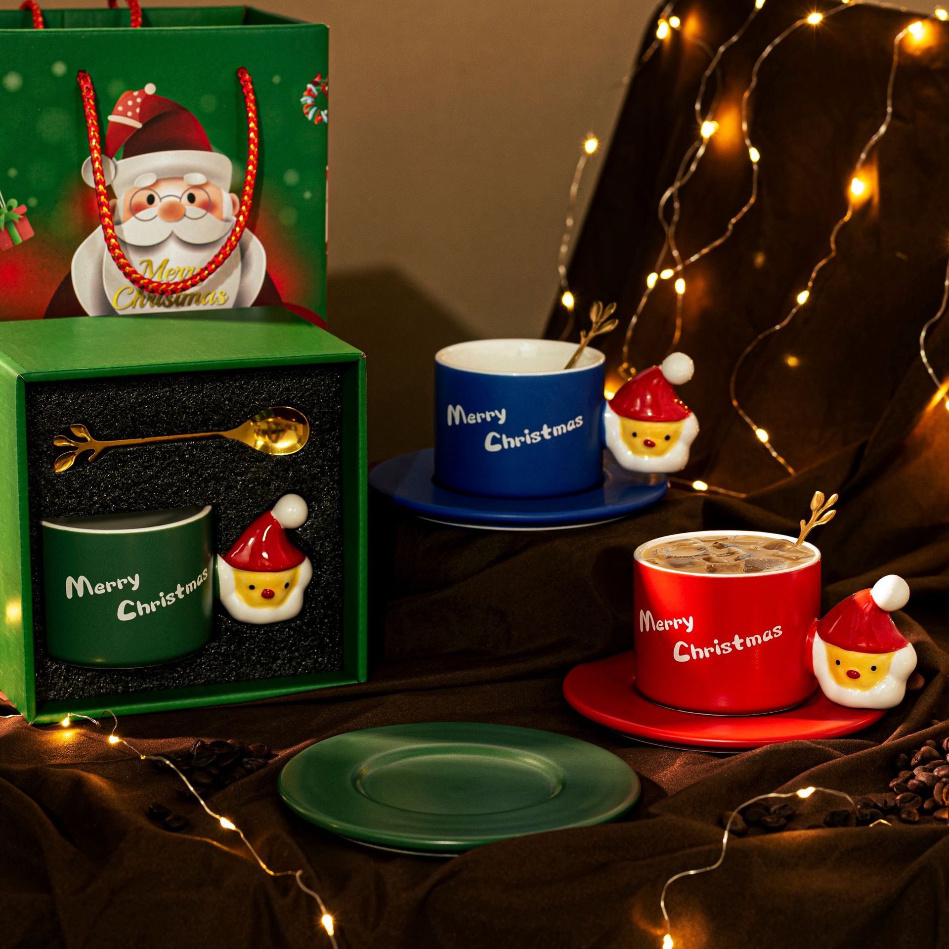 创意圣诞礼盒装马克杯个性手绘立体圣诞老人陶瓷杯家用情侣杯子