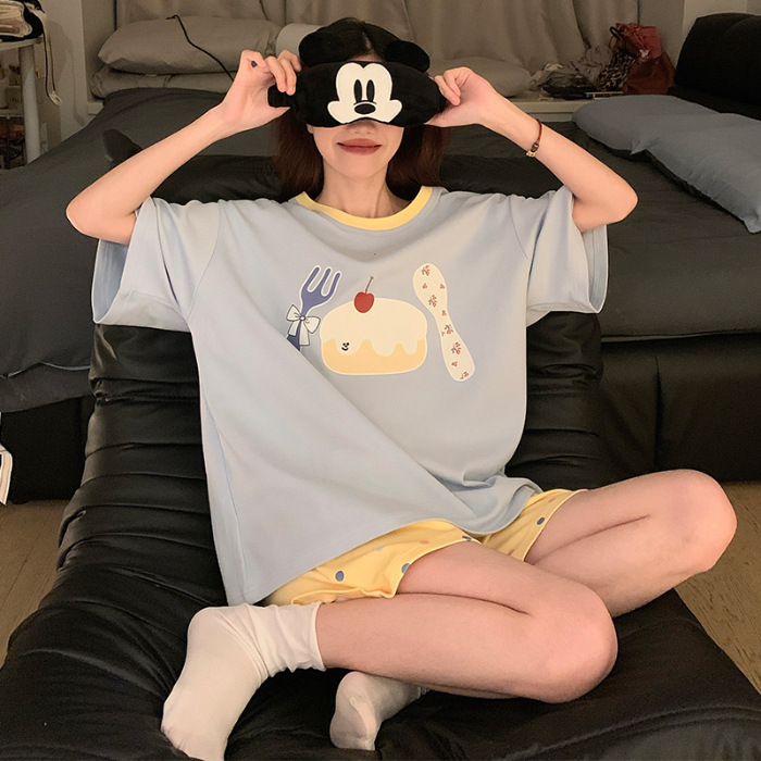 睡衣女夏季短袖短裤套装夏天女士新款学生大码卡通可爱薄款家居服