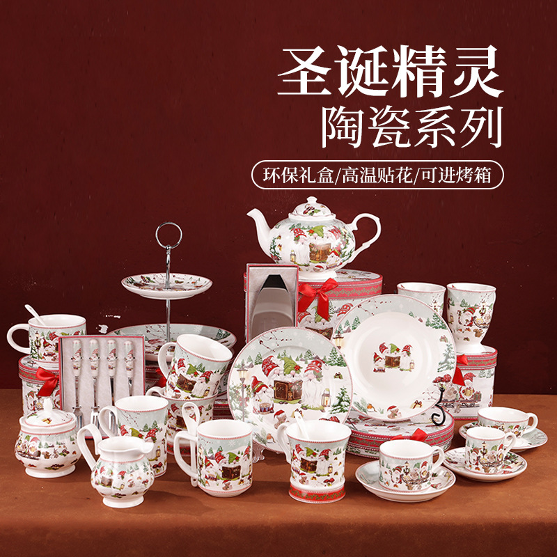 Cangkir keramik Natal cangkir sarapan + tutup + set sendok cangkir air cangkir kopi kotak hadiah mug Natal edisi terbatas