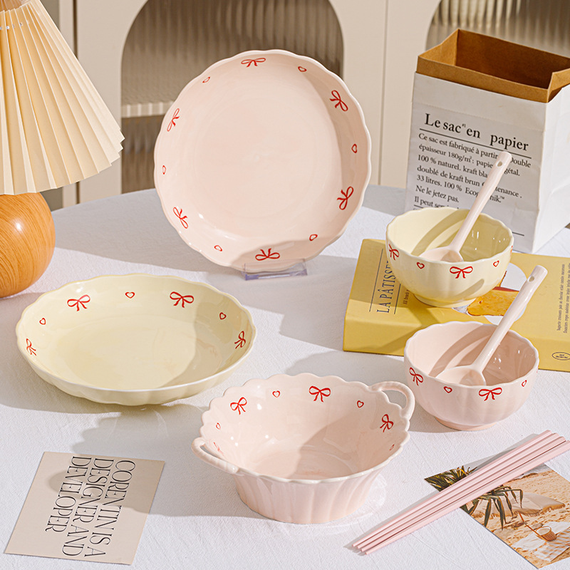 Mangkuk Lucu, Set Piring Keramik Tampak Tinggi, Mangkuk dan Sendok, Mangkuk Mie Instan Warna Glasir, Mangkuk Yogurt, Piring, Sendok, Peralatan Makan