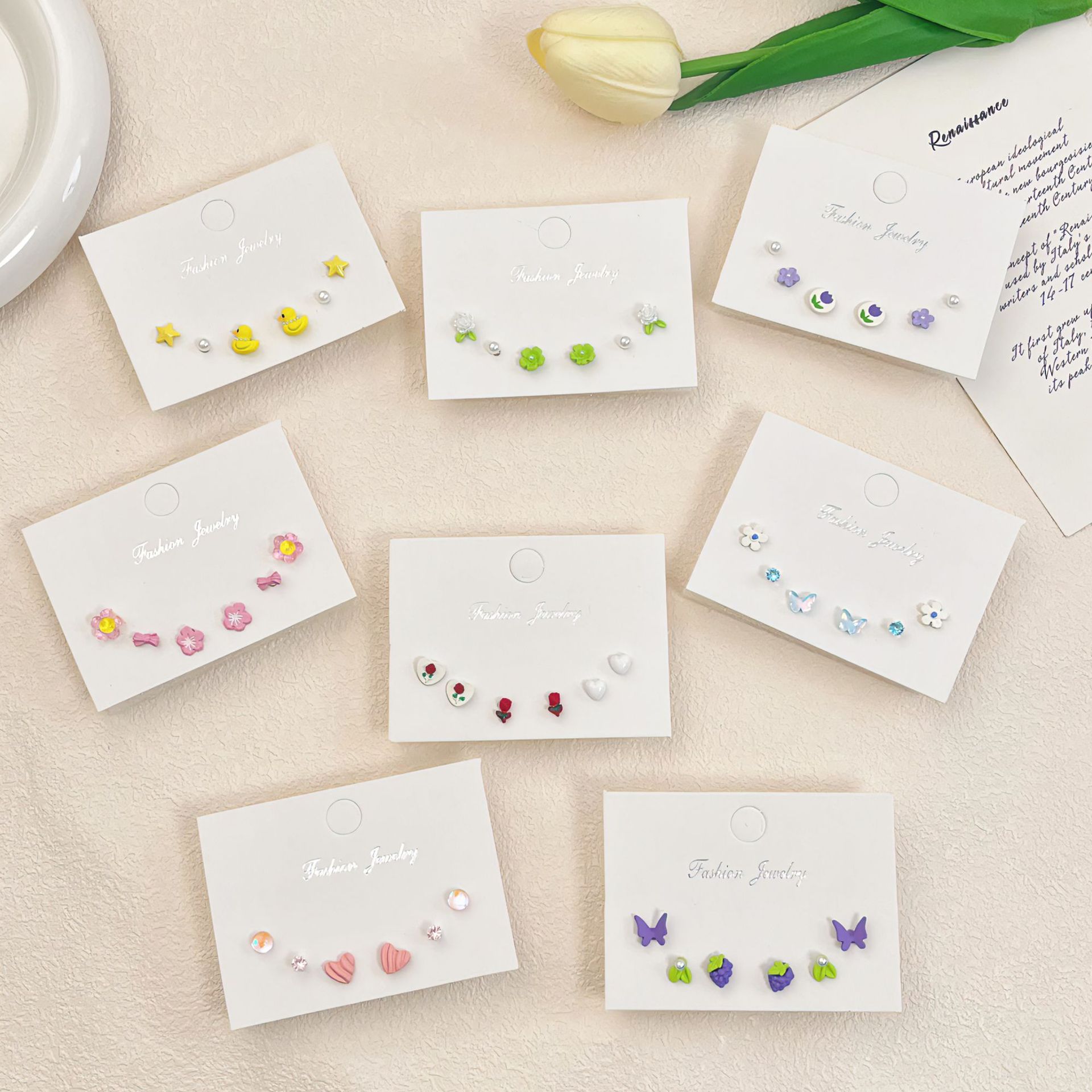 S925 anting-anting perak musim panas baru tiga pasang anting-anting setelan wanita siswa manis kecil semua cocok anting-anting sederhana yang dipersonalisasi