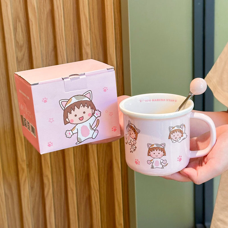 正版樱桃小丸子联名马克杯可爱卡通儿童陶瓷杯情侣生日礼物礼盒装