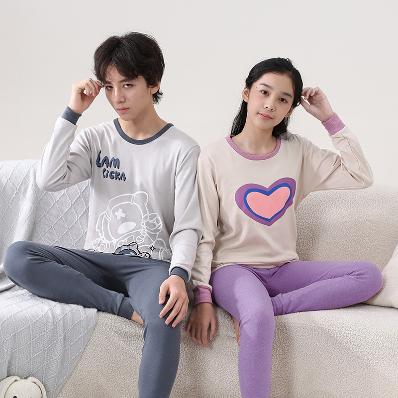 青少年保暖内衣儿童睡衣套装男大童秋衣秋裤中学生女孩打底棉毛衫