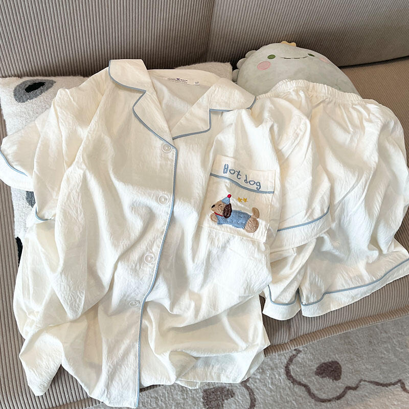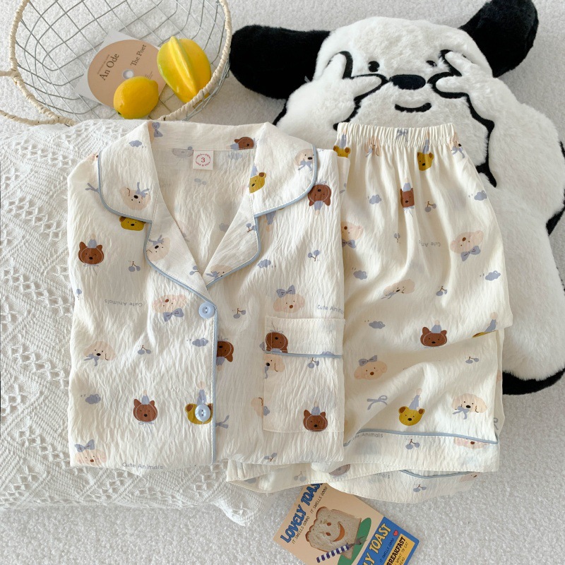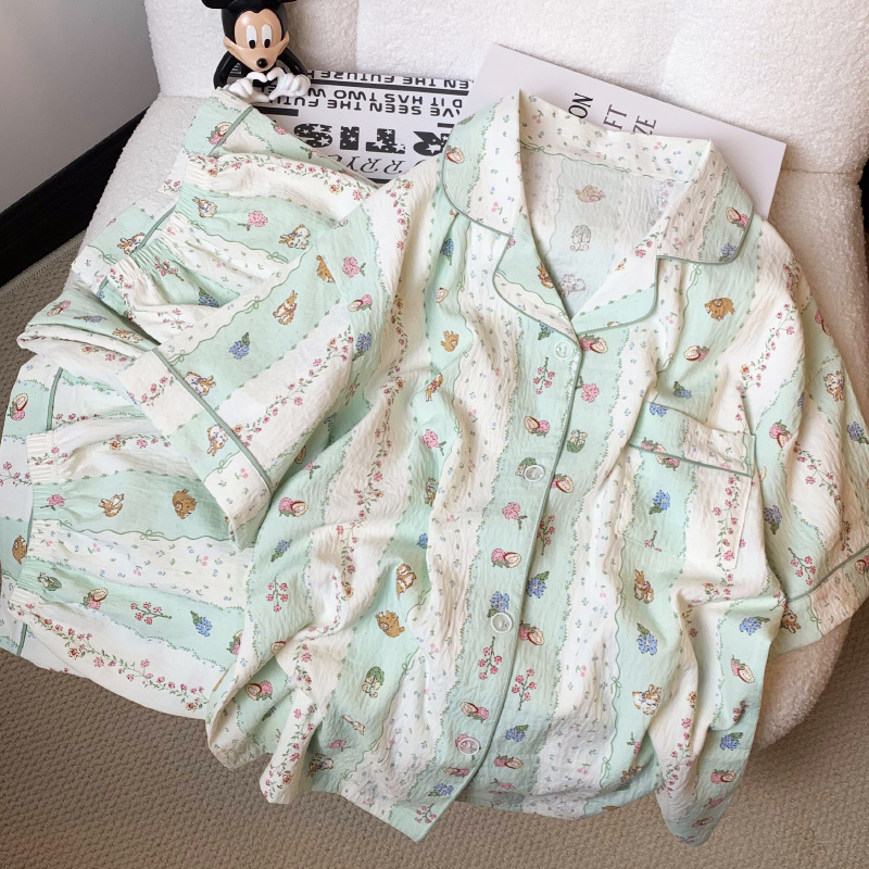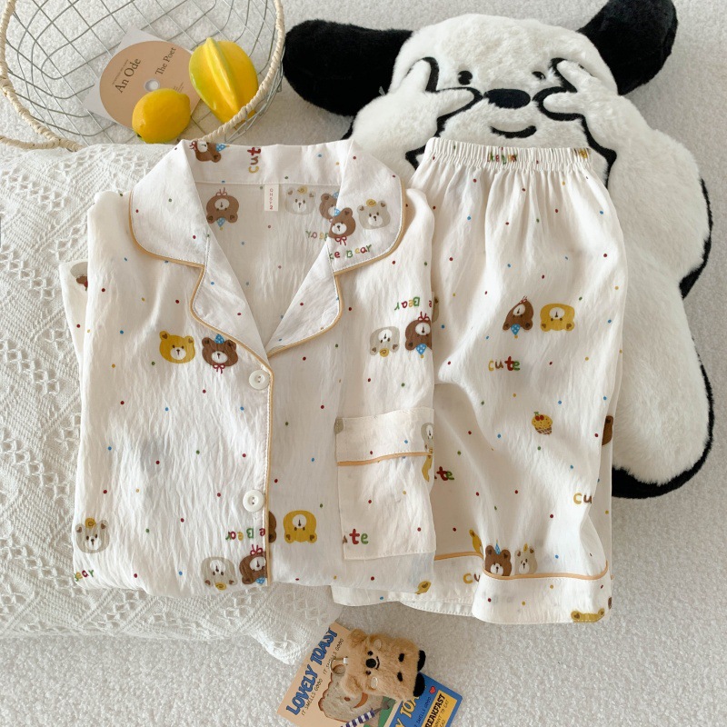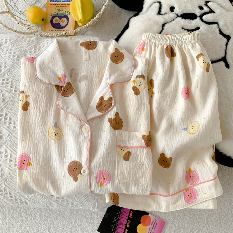 梭织纱布睡衣女夏季短袖套装可爱学生高级感开衫家居服网红可外穿