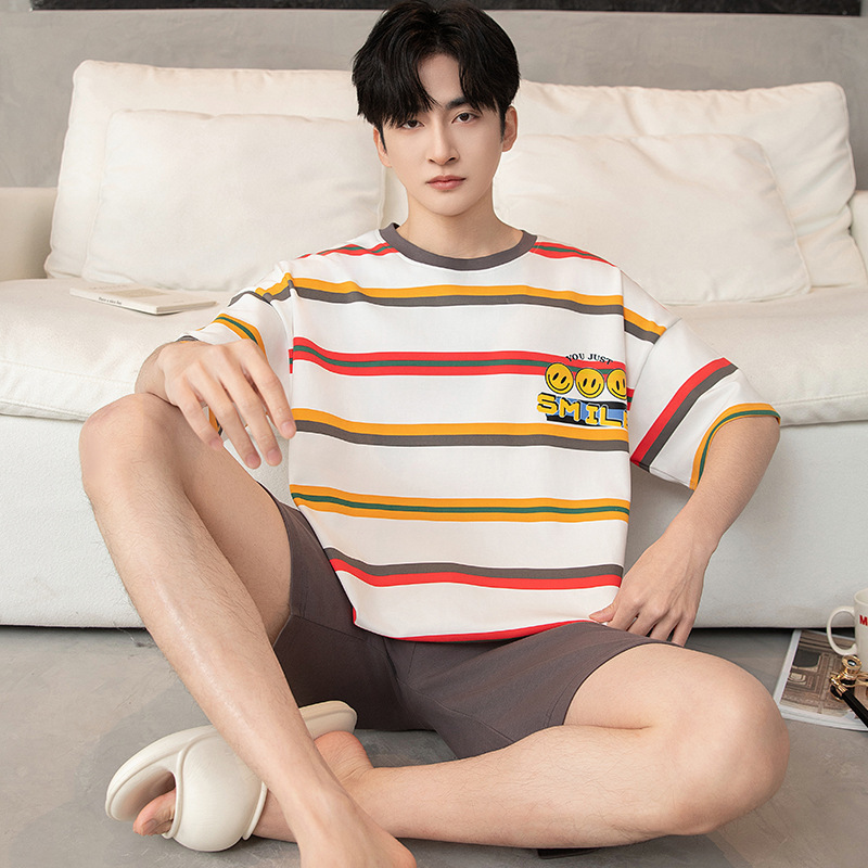 Baju Tidur Model Pria Musim Panas Pakaian Rumah Pelajar Ukuran Besar Model Tipis Musim Panas Pria Remaja Kartun Lengan Pendek Katun Murni
