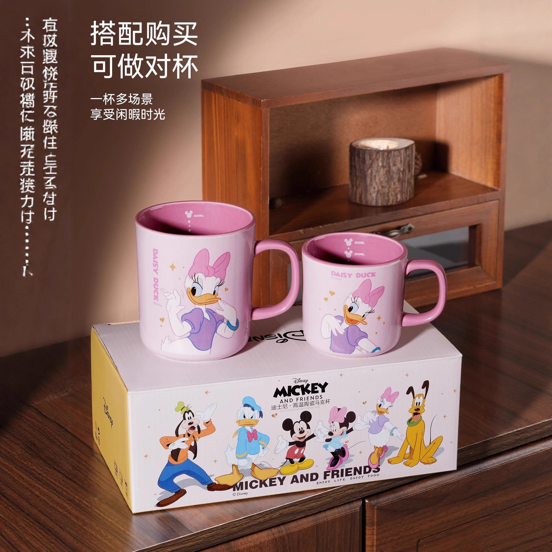 迪士尼新款米奇陶瓷杯办公室杯子家用学生水杯餐具高矮礼盒装批发