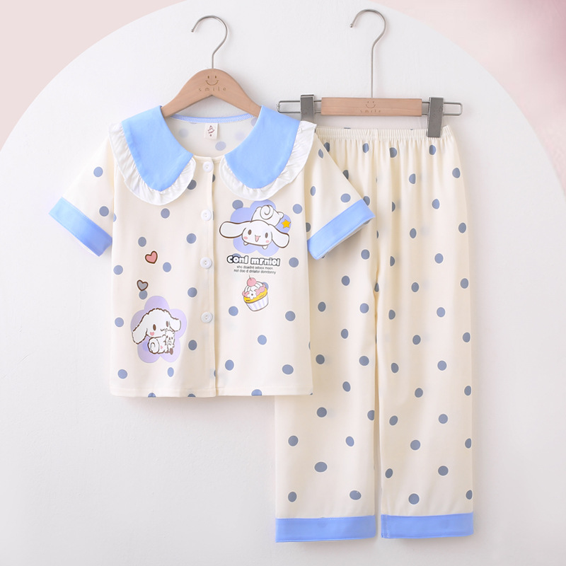 夏季儿童睡衣短袖女童卡通中大童长裤家居服套装小学生薄款空调服