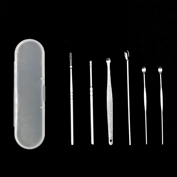 出口掏耳勺清洁采耳工具不锈钢螺旋式耳挖勺套装成人挖耳勺6件套