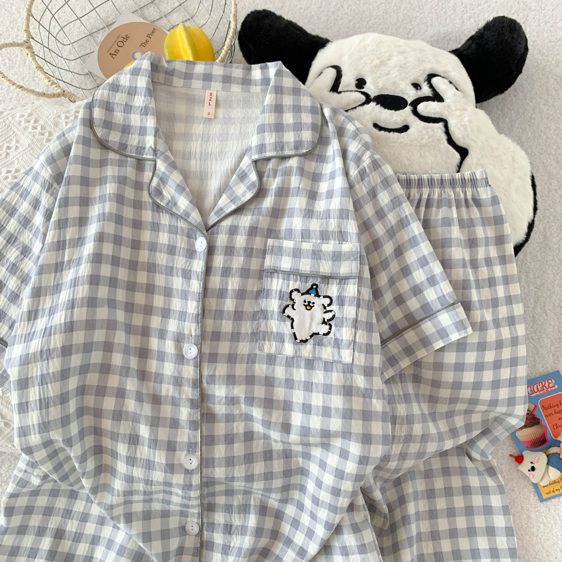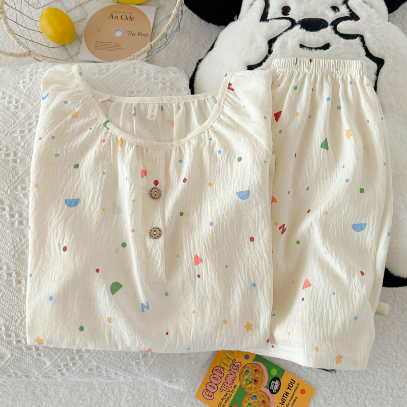 Piyama Celana Pendek Lengan Pendek Musim Panas Wanita Yundo Kapas Kerah Bulat Manis Lucu Murid Gadis Bisa Pakai Pakaian Rumah