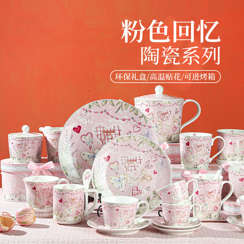 创意可爱少女心咖啡杯套装陶瓷杯礼盒马克杯高脚礼盒装办公室女生