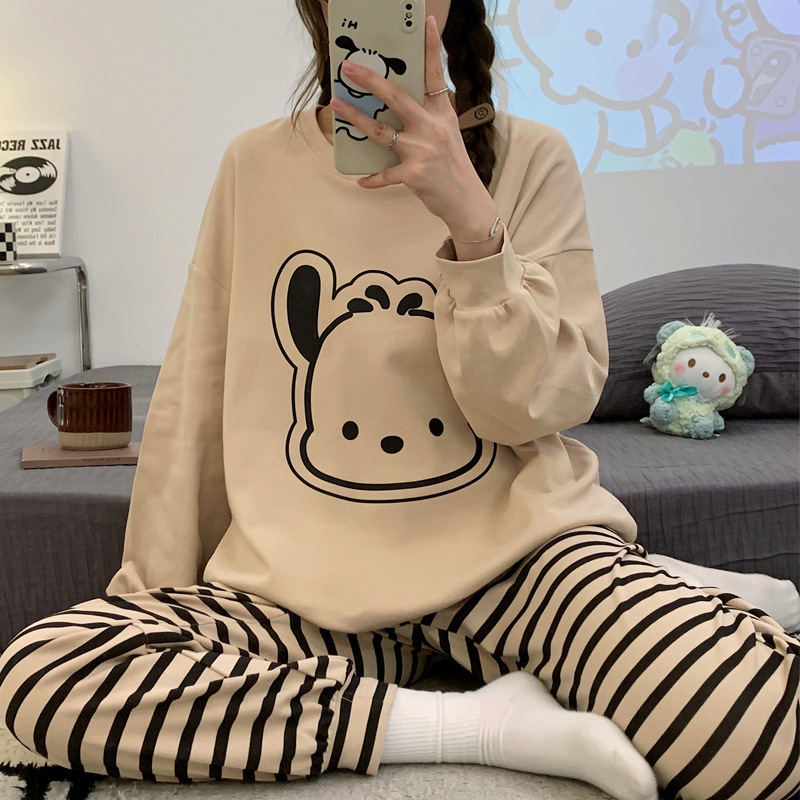 Piyama Bermotif Kelinci Gaya Manis Lintas Batas Musim Semi dan Musim Gugur Celana Panjang Lengan Panjang Asrama Siswa Set Dua Potong Grosir