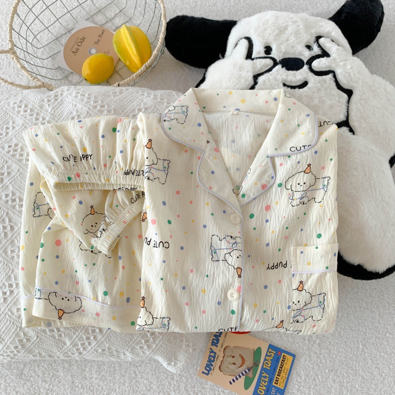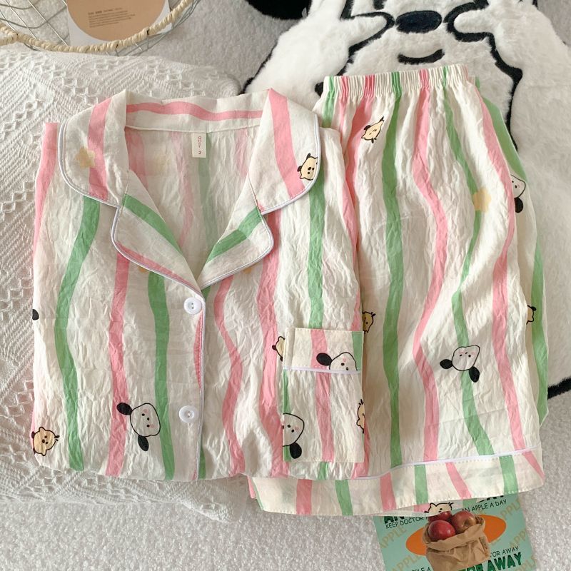 Piyama Anak Anjing Kartun Lucu Wanita Musim Panas Kapas Awan Celana Pendek Lengan Pendek Pakaian Rumah Bisa Dipakai dari Luar Gadis Pelajar