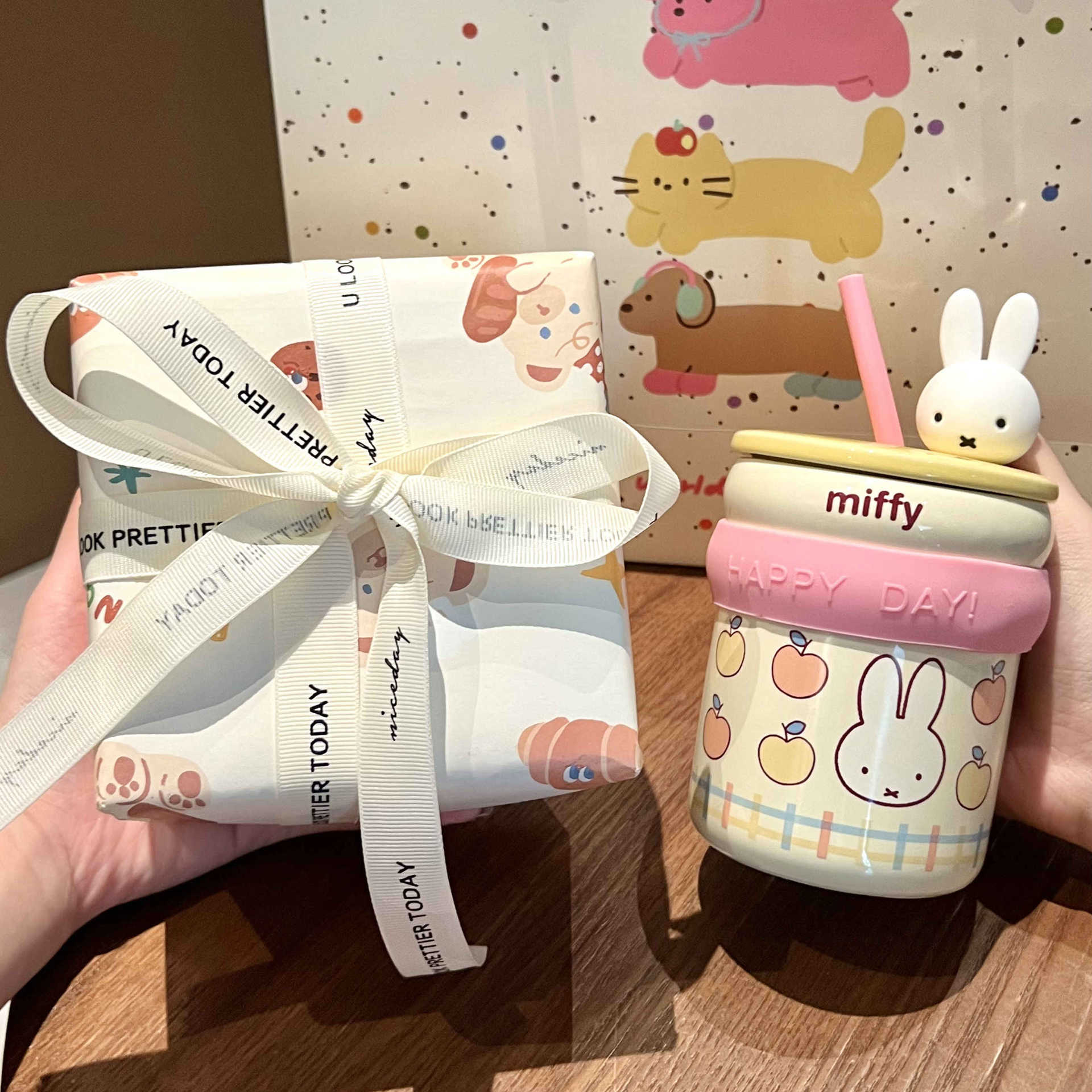 生日礼品米菲兔吸管水杯女生陶瓷马克杯带盖办公室咖啡杯伴手礼物