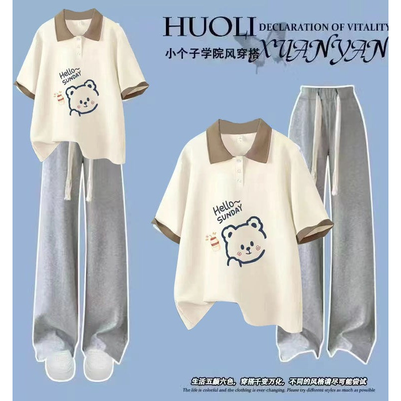 Setelan Pakaian Olahraga Kasual Katun Wanita Gemuk Musim Panas Pria Kecil Longgar Menjalankan Celana Pendek Siswa Lengan Pendek Dua Potong