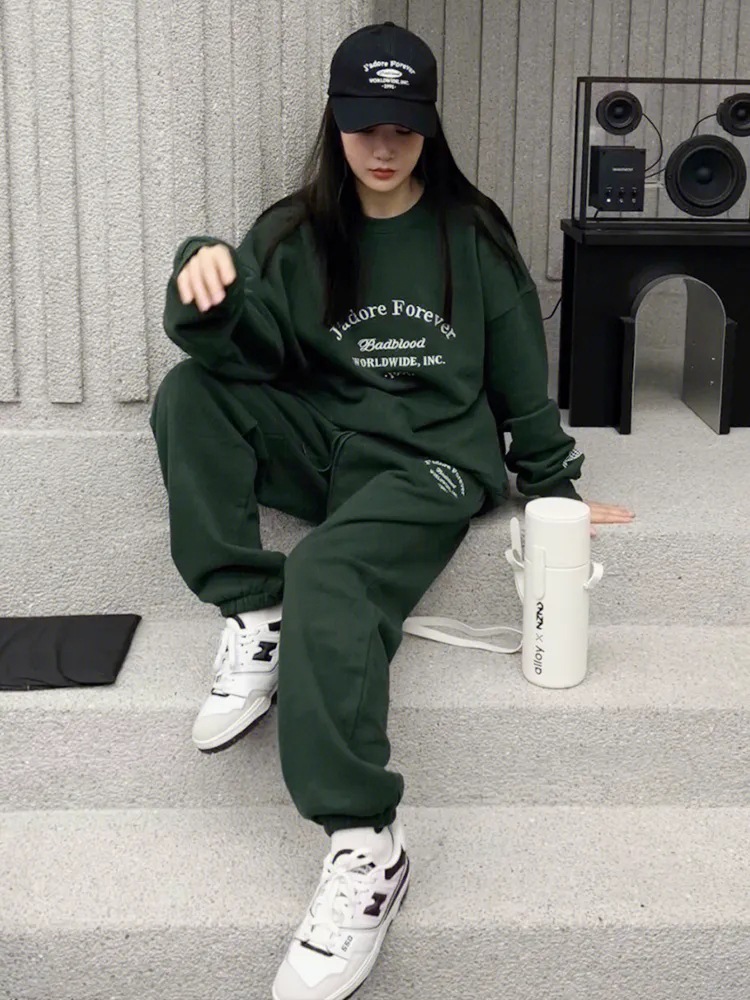 Setelan Pakaian Olahraga Amerika Sweater Gaya Barat Modis Longgar Musim Semi Musim Gugur Pelajar Wanita Setelan Dua Potong Kasual Jalanan Selebriti Internet Trendi