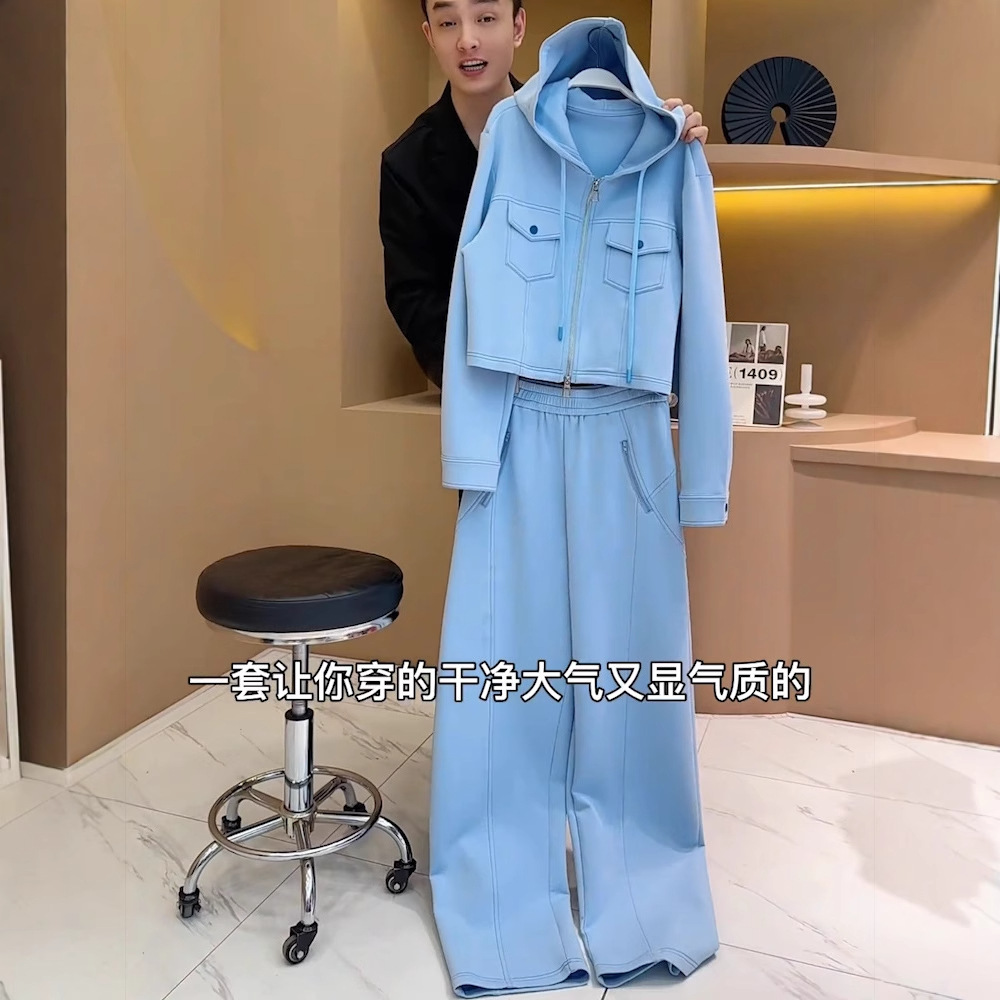 Pakaian olahraga kasual wanita setelan dua potong jaket bertudung pelajar gaya Hong Kong merah online jaket pendek kaki lebar musim panas 2023